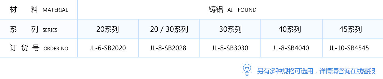 用于加強(qiáng)被連接型材點(diǎn)的支撐力,也可以用作需移動(dòng)位置的型材連接方式。連接用的T型螺栓及螺母需另配。