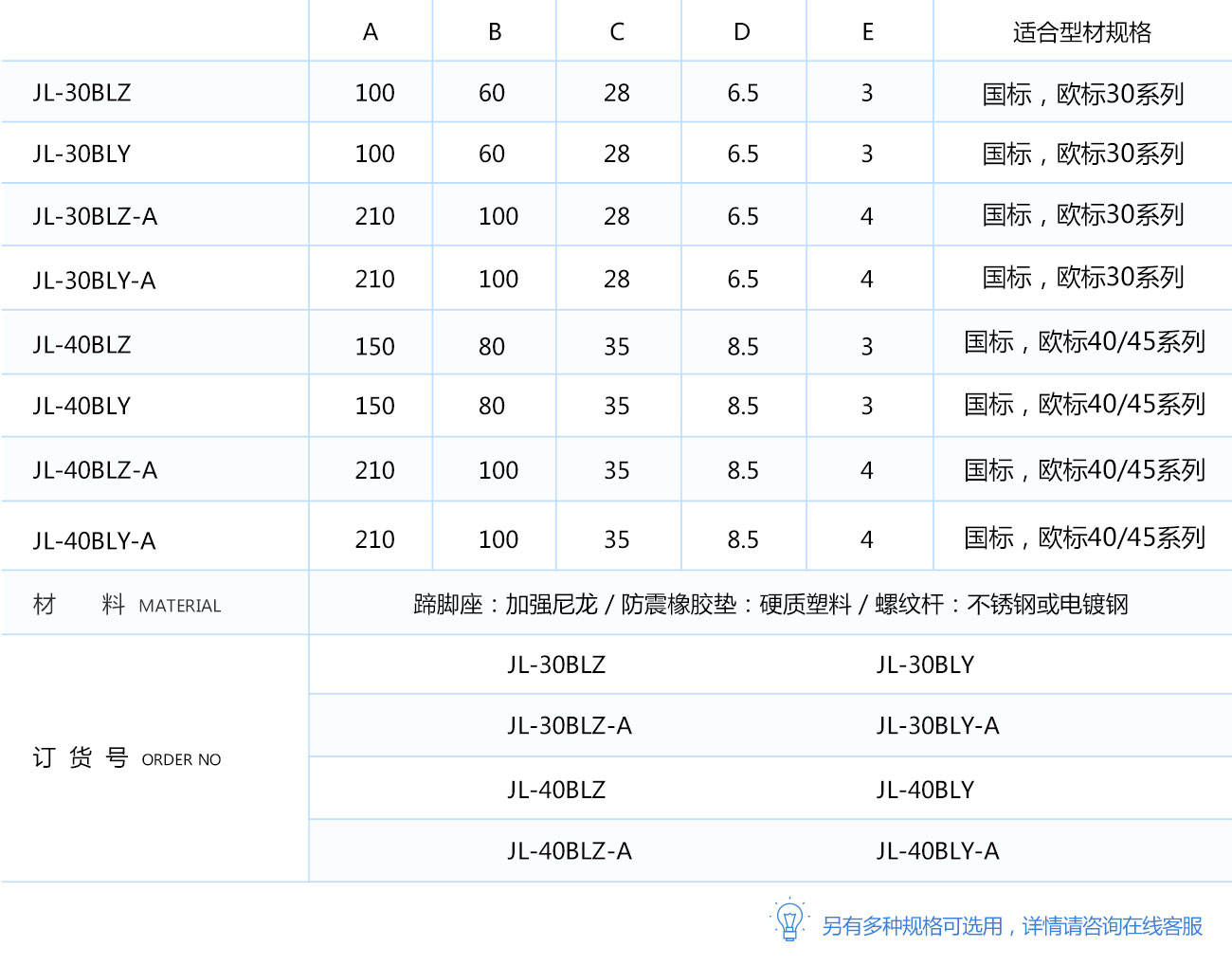 適用規格:30和40系列型材