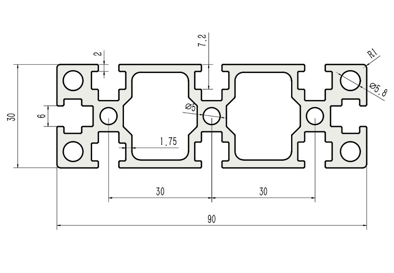 適用于應(yīng)力及強(qiáng)度較大的框架組合結(jié)構(gòu),它的外型采用直角過渡,表面經(jīng)過陽極氧化處理,高雅美觀并抗腐蝕,它通常采用M6X20高強(qiáng)度專用螺栓的內(nèi)部連接方式,堅固而又可靠,是工業(yè)框架應(yīng)用較為廣泛的型材之一。
