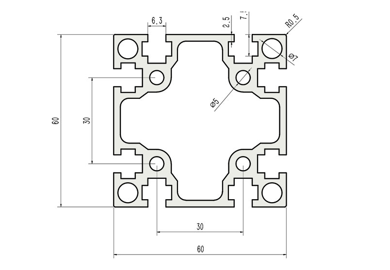 適用于應(yīng)力及強(qiáng)度較大的框架組合結(jié)構(gòu),它的外型采用直角過(guò)渡,表面經(jīng)過(guò)陽(yáng)極氧化處理,高雅美觀并抗腐蝕,它通常采用M6X20高強(qiáng)度專(zhuān)用螺栓的內(nèi)部連接方式,堅(jiān)固而又可靠,是工業(yè)框架應(yīng)用較為廣泛的型材之一。