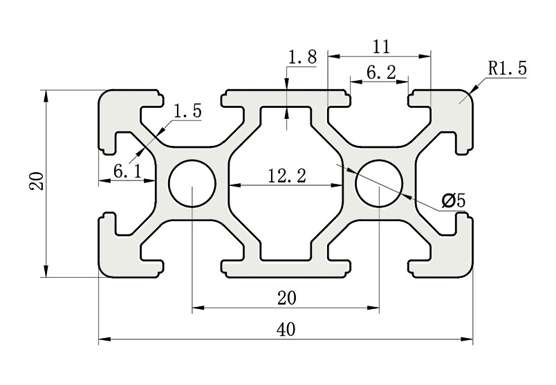 JL-6-2040E,6mm 槽寬工業鋁型材系列