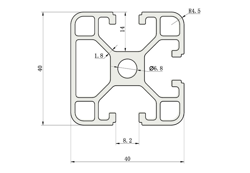 適用于應力及強度較大的框架組合結構,它的外型采用圓角過渡,表面經過陽極氧化處理,高雅美觀并抗腐蝕,它通常采用M8X20高強度專用螺栓加彈性扣件的內部連接方式,堅固而又可靠,是工業框架應用較為廣泛的型材之一。