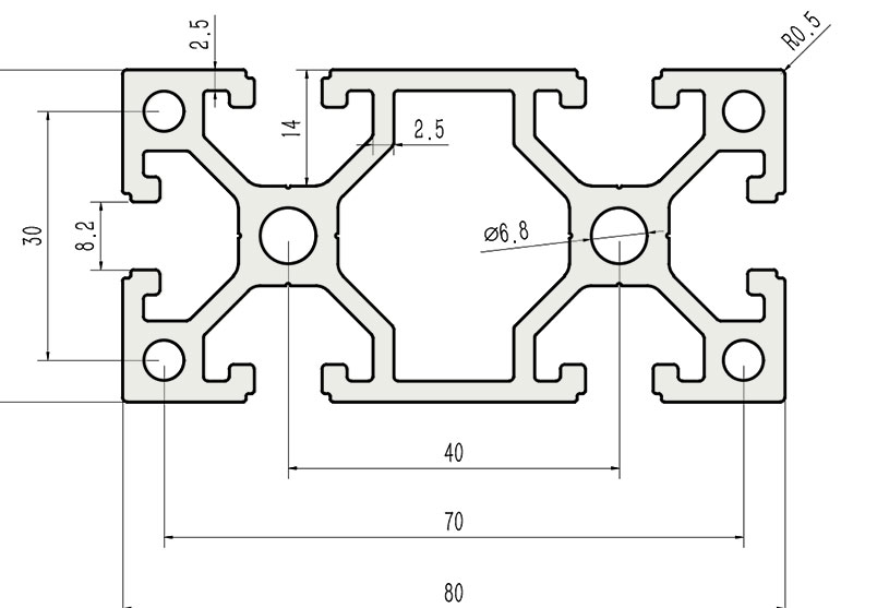 適用于應(yīng)力及強(qiáng)度較大的框架組合結(jié)構(gòu),它的外型采用圓角過渡,表面經(jīng)過陽極氧化處理,高雅美觀并抗腐蝕,它通常采用M8X20高強(qiáng)度專用螺栓加彈性扣件的內(nèi)部連接方式,堅(jiān)固而又可靠,是工業(yè)框架應(yīng)用較為廣泛的型材之一。