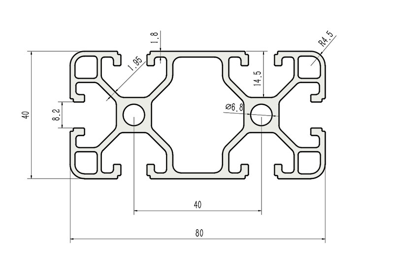 適用于應(yīng)力及強度較大的框架組合結(jié)構(gòu),它的外型采用圓角過渡,表面經(jīng)過陽極氧化處理,高雅美觀并抗腐蝕,它通常采用M8X20高強度專用螺栓加彈性扣件的內(nèi)部連接方式,堅固而又可靠,是工業(yè)框架應(yīng)用較為廣泛的型材之一。