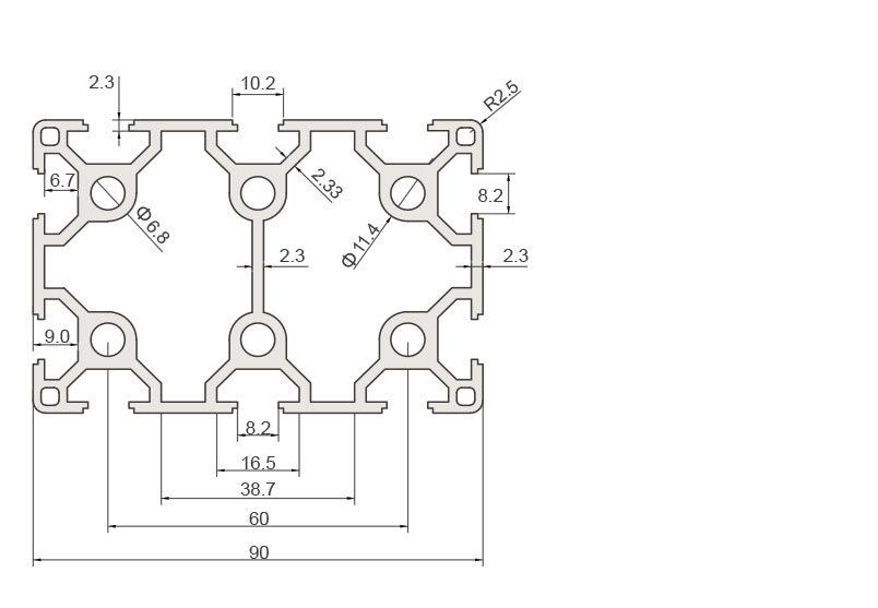 JL-8-6090E,8mm 槽寬工業鋁型材系列